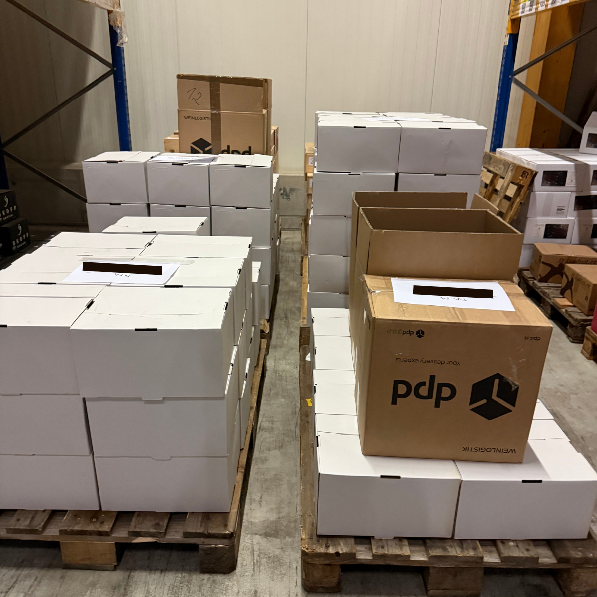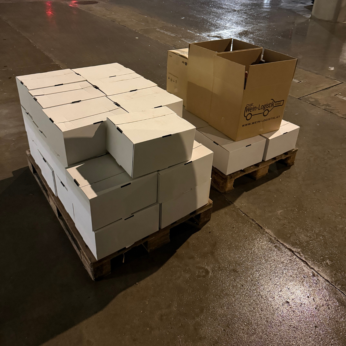 Für Weine, die noch nicht verpackt waren, stellte Wine Wallet passende Kartonagen zur Verfügung. Anschließend wurde der gesamte Bestand auf Europaletten bereitgestellt, von Wine Wallet abgeholt und ins Lager nach Parndorf gebracht. Auch die Transportversicherung wurde dabei über Wine Wallet abgewickelt.